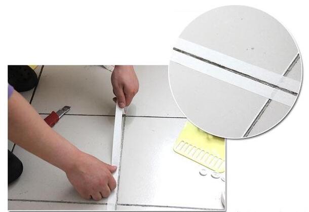 除了表面光滑的美縫劑,其他瓷磚做美縫的時候一定要貼上美紋紙,打上美縫蠟也一樣可以施工。美紋紙沿著縫隙邊緣貼上,不可離縫隙太遠,也不要貼進縫隙里面,以免影響美縫劑的附著力。美縫蠟也一樣,需要抹在縫隙的兩側,不可抹進縫隙中。