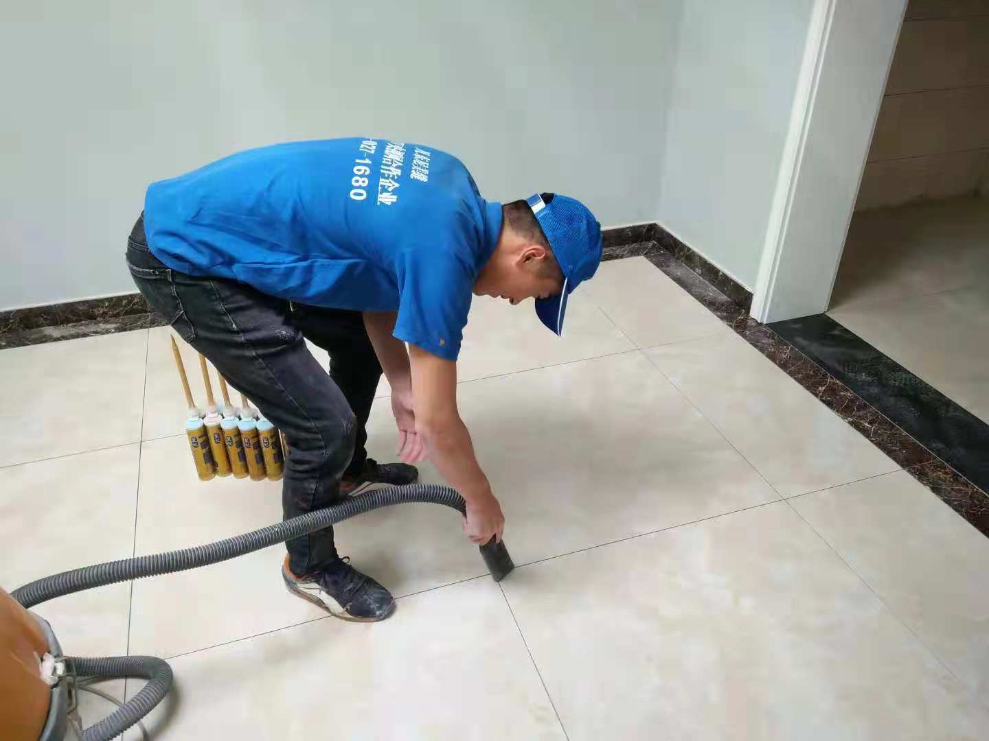 清理瓷磚側(cè)壁和磚縫:用裁紙刀把瓷磚縫清理出一個凹槽,槽最佳深度是0.8-1.5毫米。這都是需要細致耐心的活,彎著腰、蹲在地上一點點清理,不經(jīng)常干體力活的人可能蹲一會就累得不行,確實是個辛苦活兒,想要自己做的話,要提前做好心理準備。